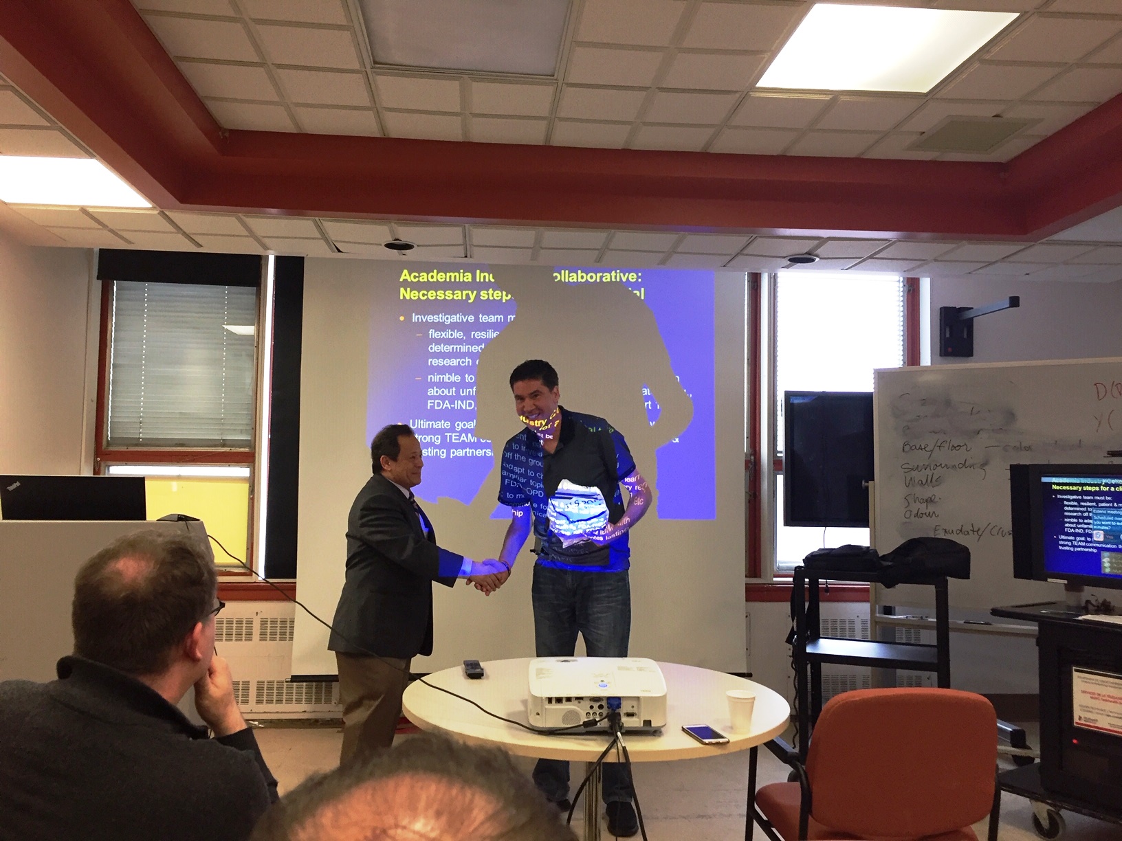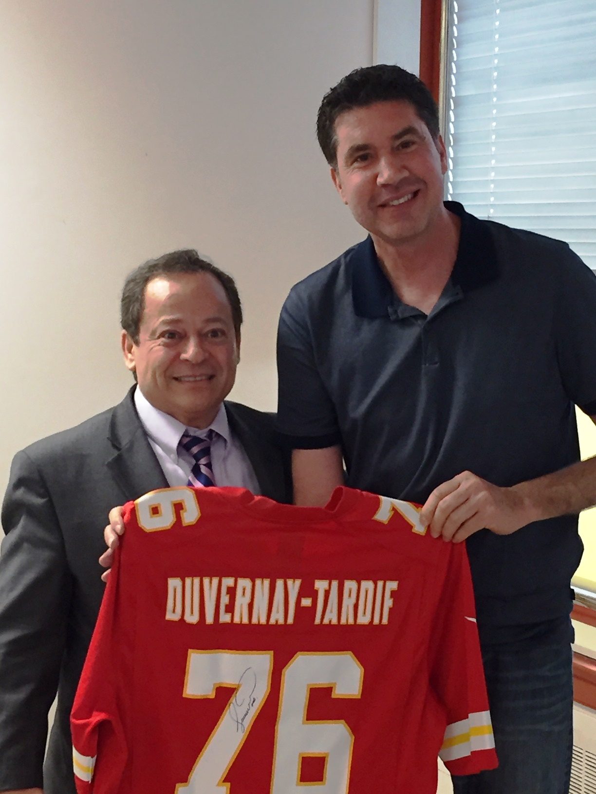 Comme il est un grand fan des Chiefs de Kansas City (NFL), j’ai remis un chandail autographié par Laurent Duvernay-Tardif à Dr Dimachkie à la fin de sa présentation. Il était bien heureux!