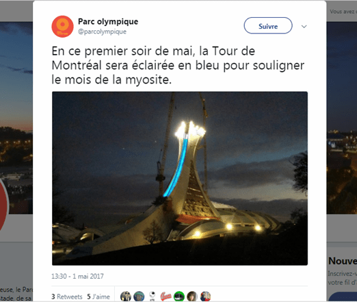 Mois de la Myosite – le mat olympique éclairé